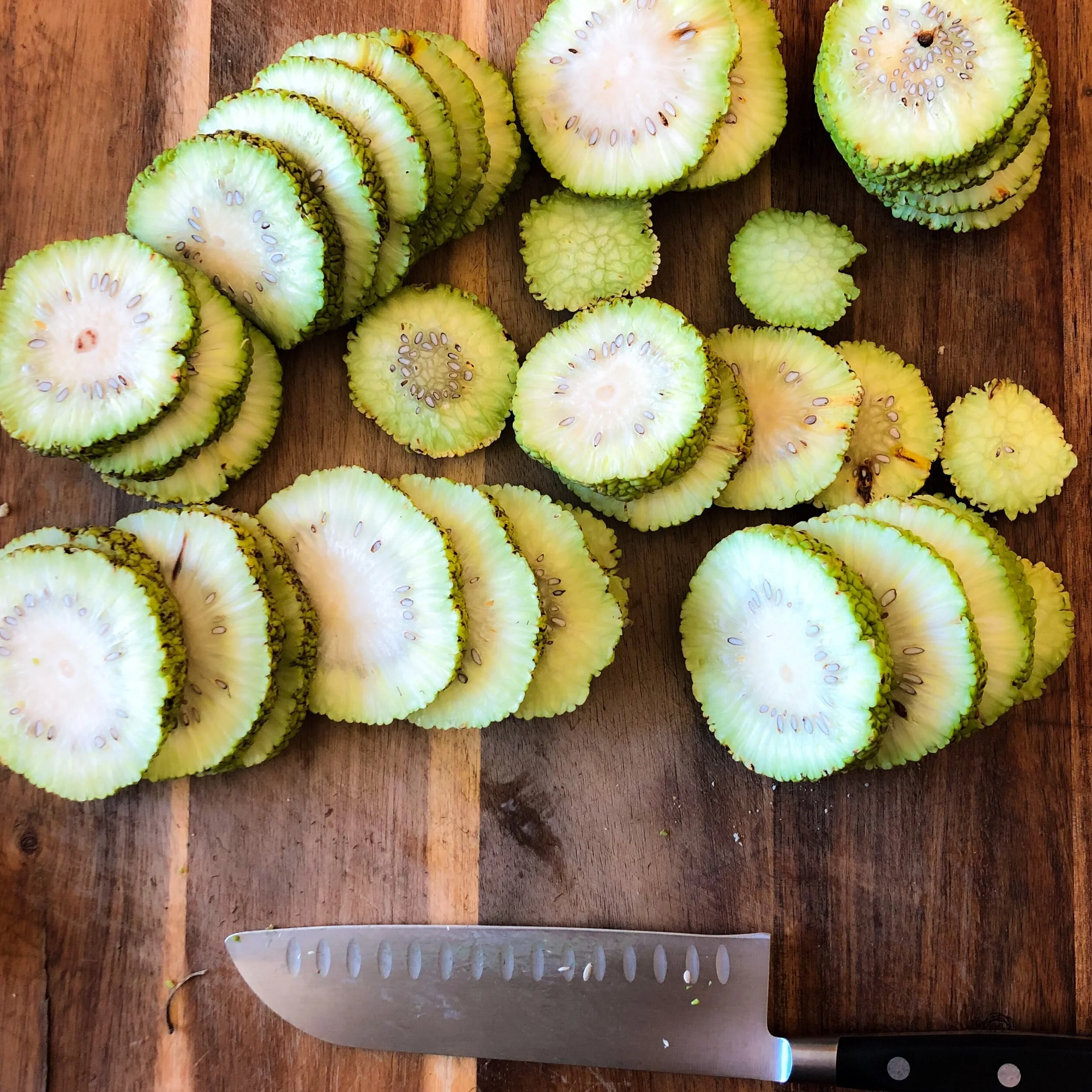 I also want to experiment with the fruit in my Christmas decorations this year so I sliced the fruit into ¼” slices and dried them in my hanging herb rack.